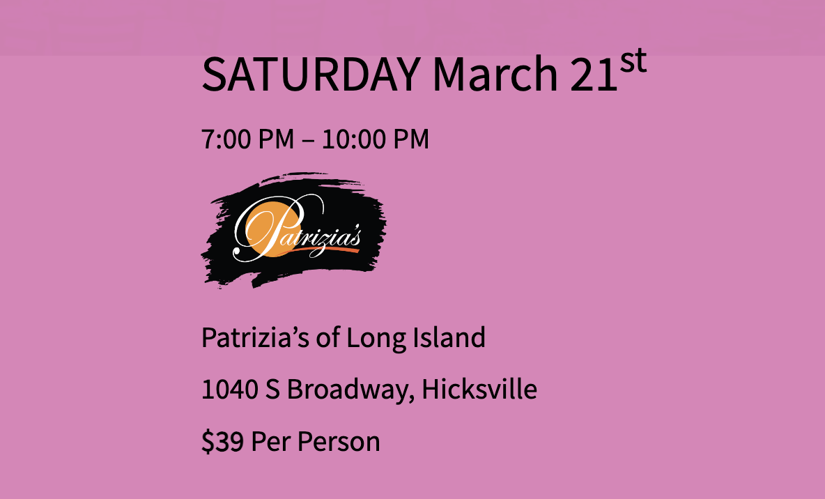 Please join us 7:00PM Saturday, March 21st at Patrizia’s of Long Island as we launch MPBC’s 2026 season with a night of food, refreshment, music and camaraderie. The night includes three hours of appetizers, a family style dinner, desserts, and open bar (unlimited beer, wine, and sangria). There are also plans to raffle off a few cycling-themed prizes.